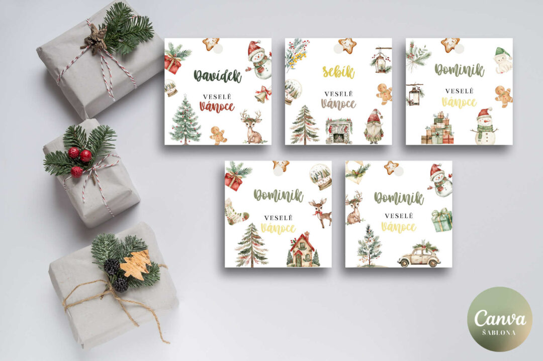 V setu obdržíte celkem 14 typů vánočních visaček, přání a pohled, vánoční menu a dopis pro Ježíška v několika barevných variantách, odpovídajících variantám visaček na dárky. Všechny šablony si můžete libovolně upravovat. Přepisovat popisky a jejich barvy, měnit obrázky, jejich velikost a umístění. Můžete si tak vytvořit kombinaci odpovídající přesně vašim představám a přáním. Nemusíte mít strach, vše budete mít detailně vysvětleno v přiloženém pdf s návodem, který od nás obdržíte po zaplacení objednávky.